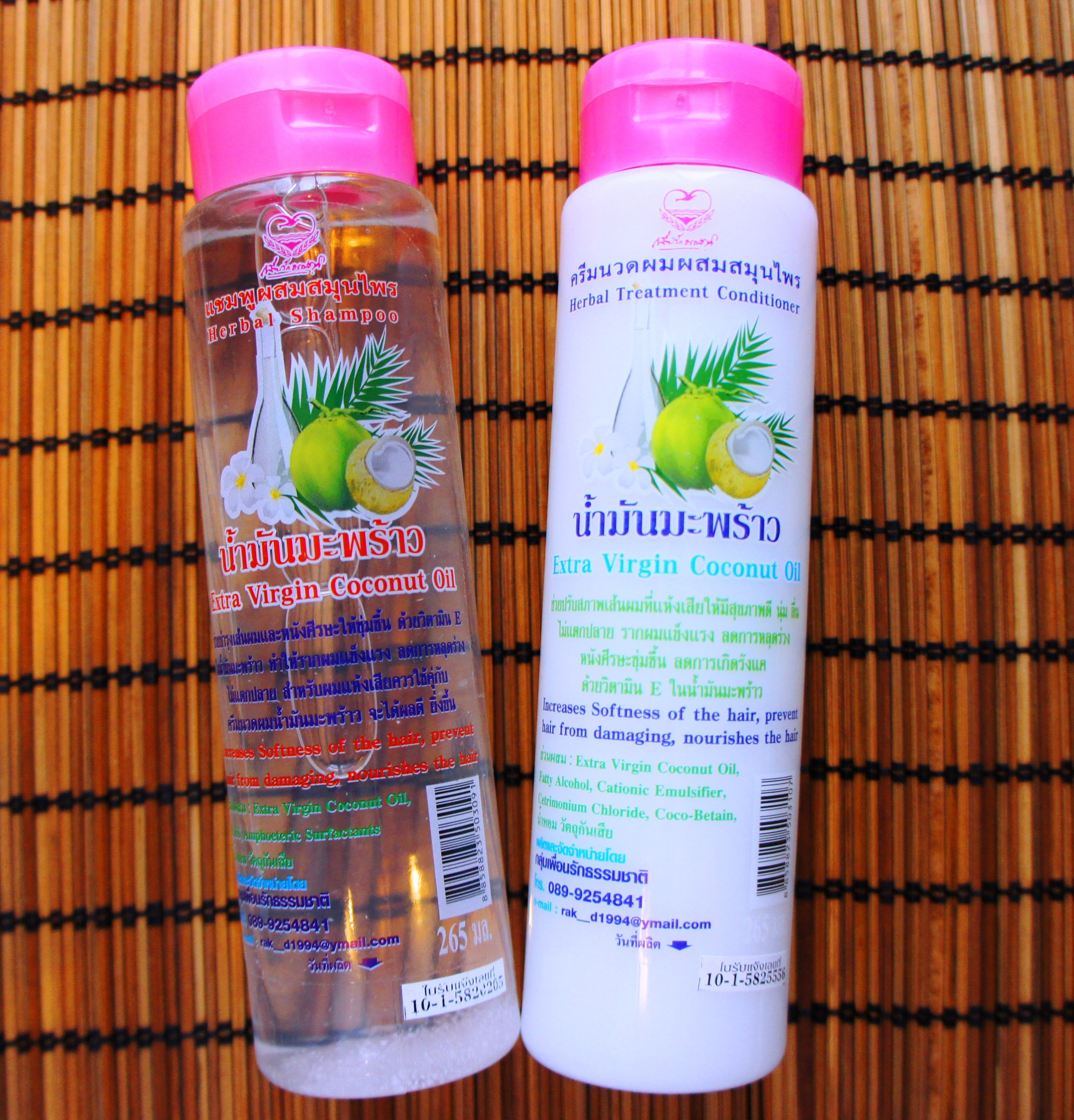 Тайский шампунь и кондиционер с 100% кокосовым маслом по 265 мл.